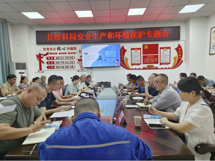 会议传达学习了习近平总书记关于安全生产、环境保护重要讲话精神及黄强省长在全省应急和安全生产工作电视电话会议上的讲话精神,通报了资阳市罗某某擅自堆放固体废物案、泸州市四川中飞包装有限公司未执行重污染天气应急减排措施案等生态领域典型案例,并发放宣传资料,集中观看了安全警示教育片。大英县经科局通报了安全生产、环境保护中存在问题并对下一步工作进行了安排部署。