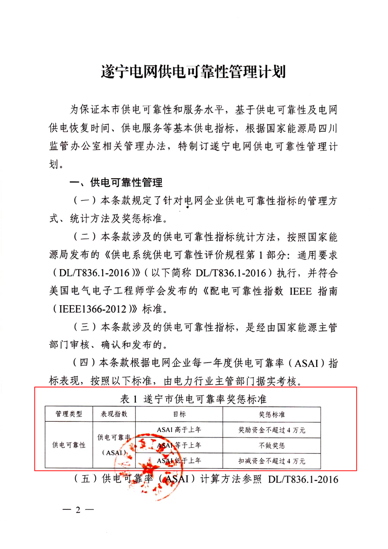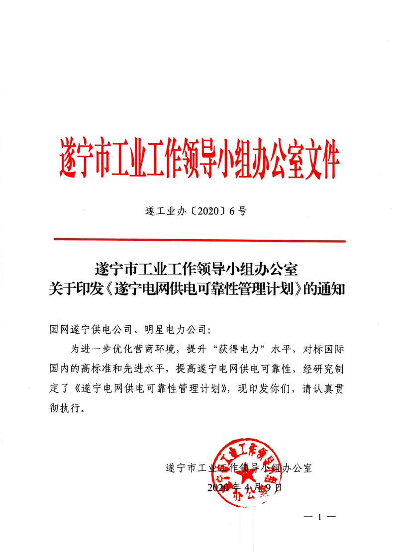 遂宁市工业工作领导小组办公室关于印发《遂宁电网供电可靠性管理计划》的通知
