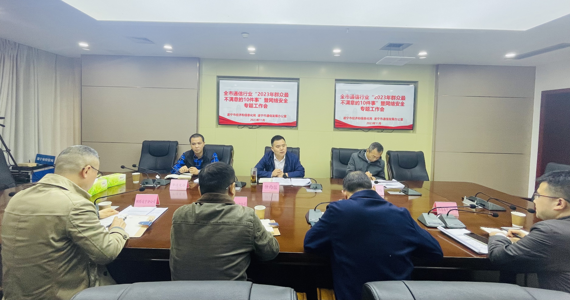 近日,市经济和信息化局会同市通信发展办公室组织召开专题工作会议,就通信行业“群众最不满意的10件事”集中整治、网络安全等重点工作进行阶段性总结梳理,分析形势、查找不足,对下一步工作进行再安排、再部署。市经济和信息化局副局长仲雨猛主持会议并讲话,市通信发展办公室分管负责同志,以及遂宁电信、移动、联通、铁塔遂宁分公司分管负责人及有关业务部门负责人参加会议。