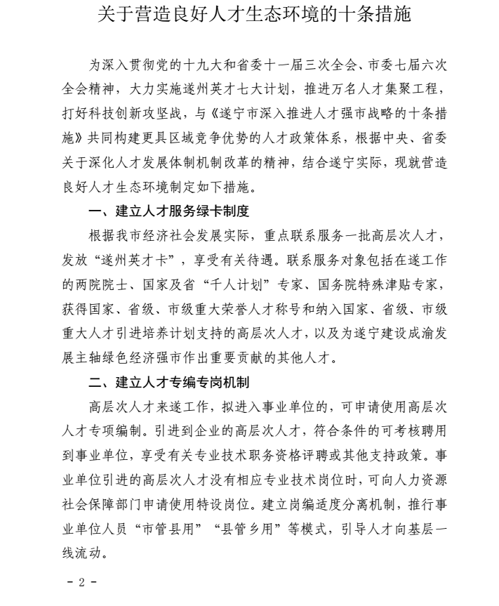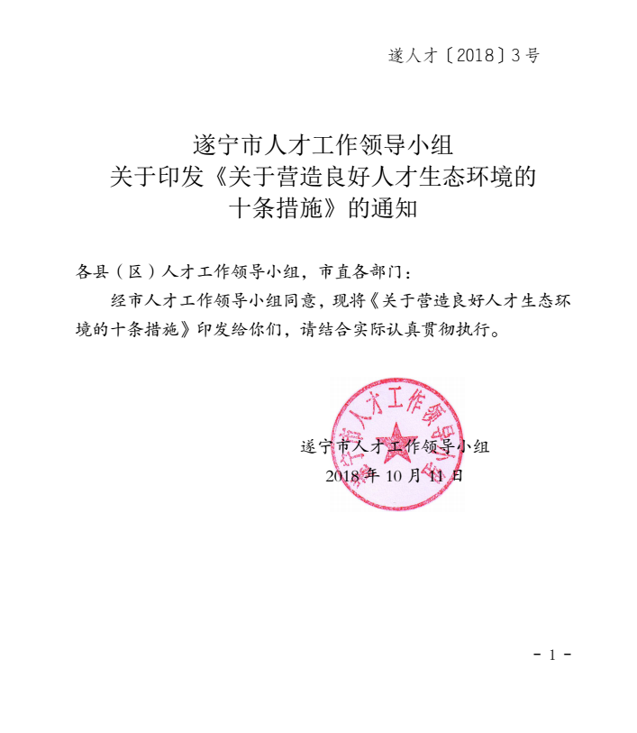 遂宁市人才工作领导小组关于印发《关于营造良好人才生态环境的十条措施》的通知