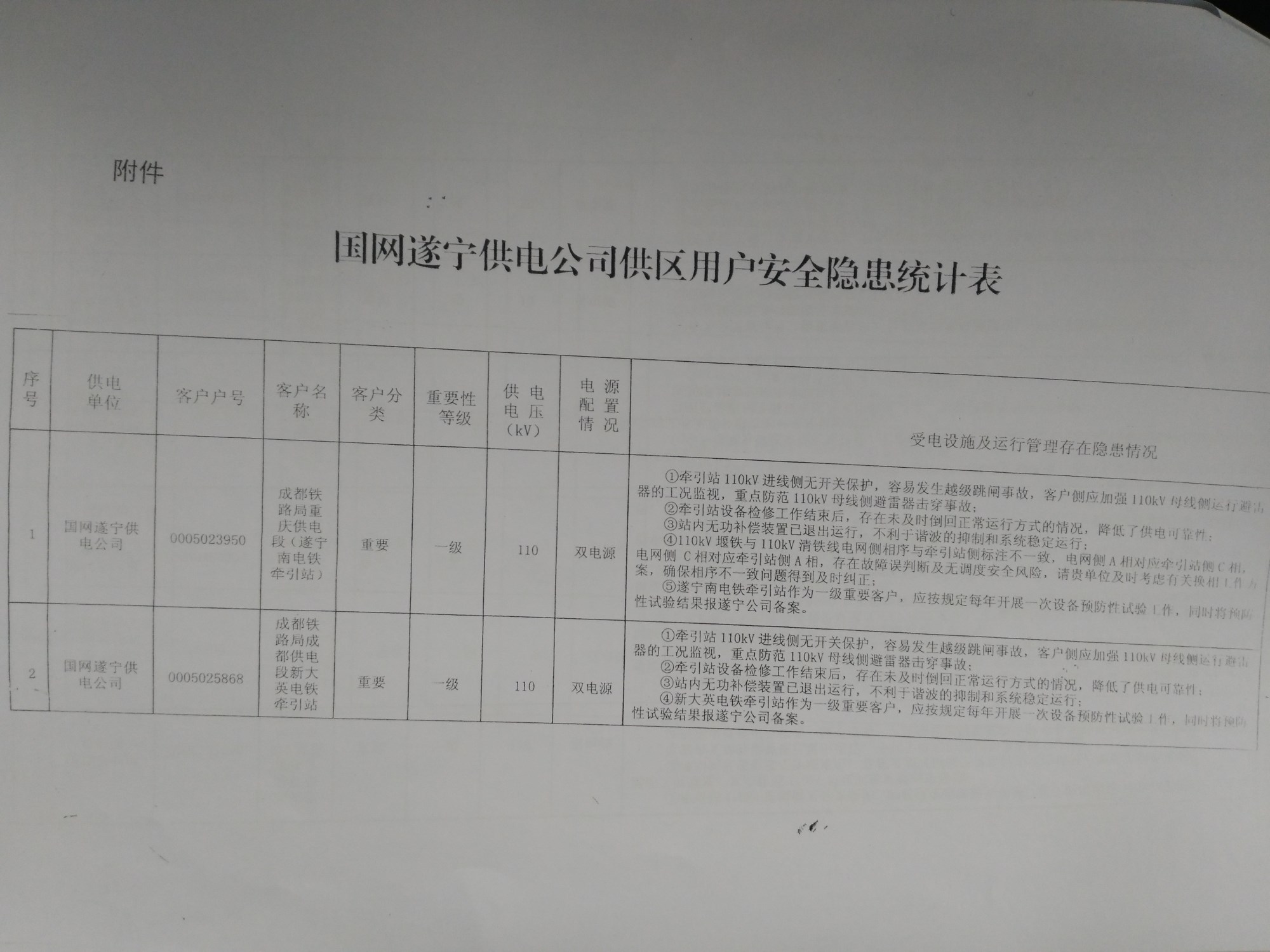 附件:国网遂宁供电公司供区用户安全隐患统计表