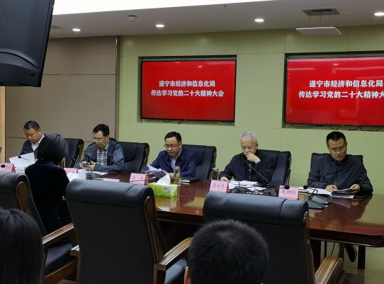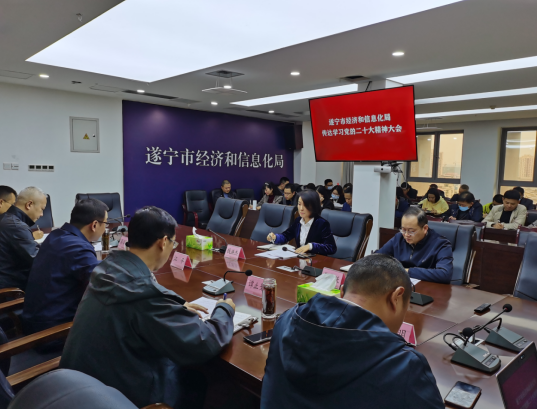 10月26日,遂宁市经济和信息化局召开传达学习党的二十大精神大会,对学习宣传贯彻党的二十大精神进行部署。局党组书记、局长江平主持会议,全体干部职工参加会议。