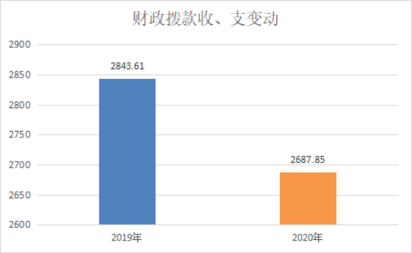 2020年财政拨款收、支总计2687.85万元。与2019年相比,财政拨款收、支总计各减少155.76万元,下降5.48%。主要变动原因是离退休人员减少,财政拨款收入减少。