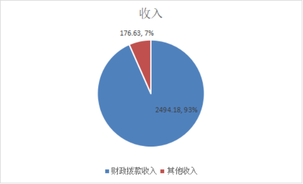 2020年本年收入合计2670.81万元,其中:一般公共预算财政拨款收入2494.18万元,占93.39%;政府性基金预算财政拨款收入0万元,占0%;上级补助收入0万元,占0%;事业收入0万元,占0%;经营收入0万元,占0%;附属单位上缴收入0万元,占0%;其他收入176.63万元,占6.61%。