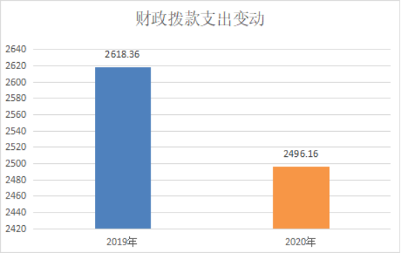 2020年一般公共预算财政拨款支出2496.16万元,占本年支出合计的92.37%。与2019年相比,一般公共预算财政拨款减少122.2万元,下降4.67%。主要变动原因是离退休人员减少,财政拨款收入减少。