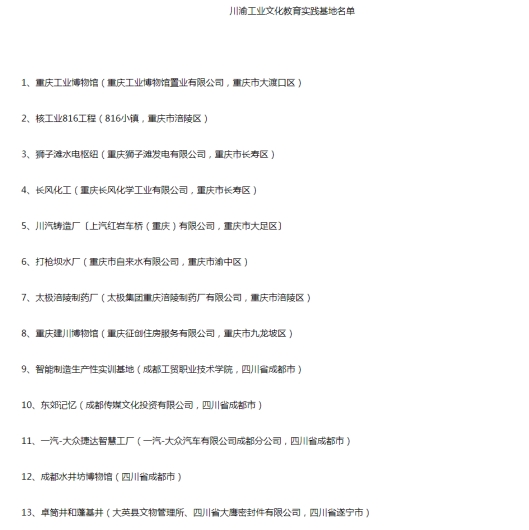 大英县将以成功入选川渝工业文化教育实践基地为契机,进一步深入挖掘工业文化底蕴,以钻井制盐文化为主题,加强“盐井研学”精品课程建设,采用“先导式课程+场景式课程”相结合方式,推动大英工业文化传承发展,促进川渝工业文化教育实践交流,为大英工业高质量发展增添文化内涵。
