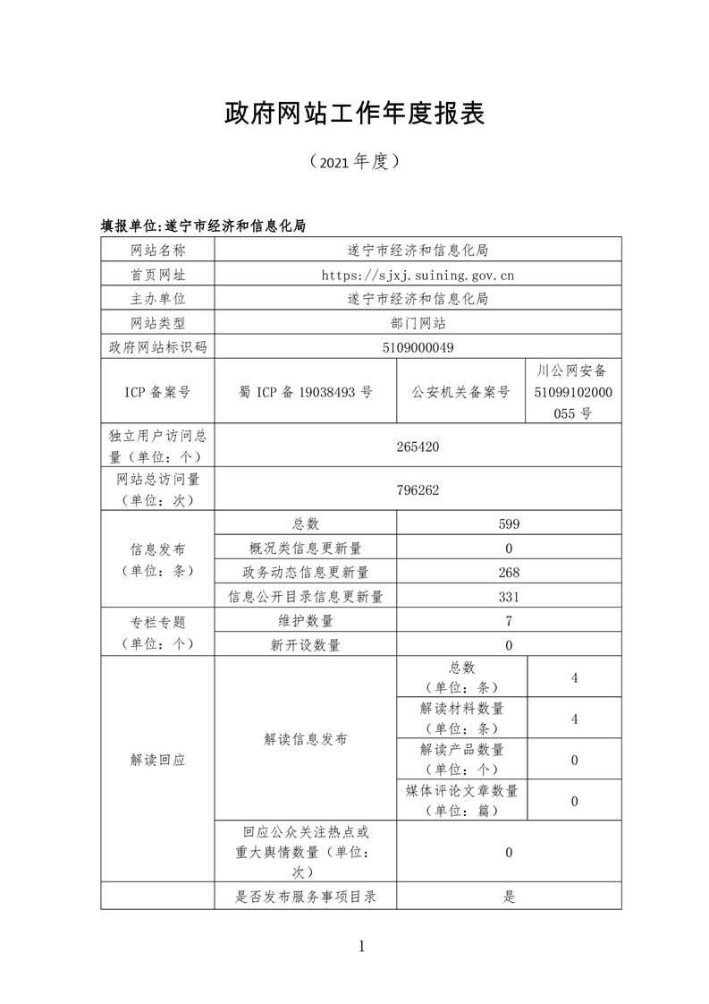 2021年遂宁市经济和信息化局政府网站工作年度报表