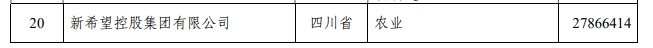 四川有10家民营企业上榜,其中,新希望控股集团以27866414万元的营收位列榜单第20位,通威集团位于28位,川威集团位于114位,蓝润集团第117位。上榜四川企业如下: